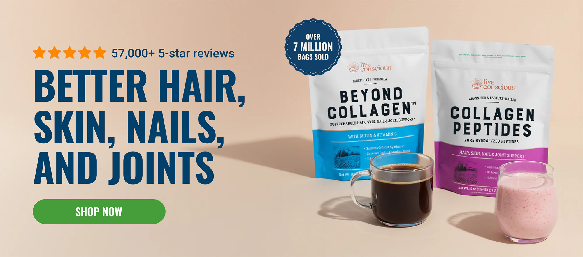 That’s why I trust Live Conscious Beyond Collagen.Their formula is crafted to support your body’s natural collagen foundation with clinically studied types I, II, III, V & X collagen.One scoop a day helps promote smoother skin, fuller hair, stronger nails, and more flexible joints, supporting graceful, healthy aging from the inside out.